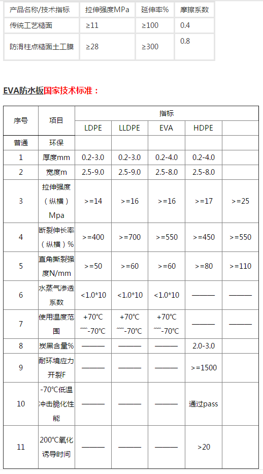 糙面防水板具有優異的溫度適應性,可焊接性,耐候性和良好的抗老化性、耐化學腐蝕性、耐環境應力開裂性能及抗戳穿性能。產品分為單糙面和雙糙面。